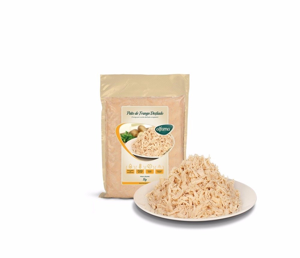 O PEITO DE FRANGO COZIDO DESFIADO ALFAMA é produzido com o peito do frango, obtenha ótimo rendimento e ganhe tempo e praticidade sem perder o sabor original de suas receitas, sem dúvida o melhor custo-beneficio para seu negócio.